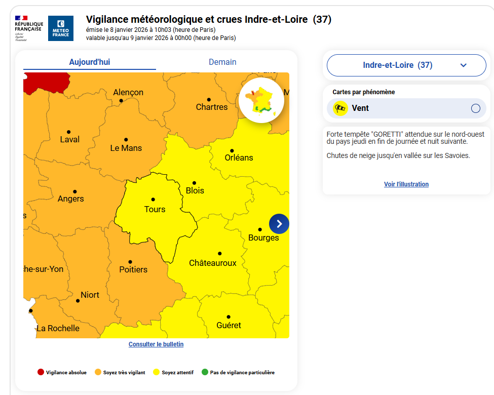 ⚠️ Vigilance – Tempête Goretti à Saint-Genouph